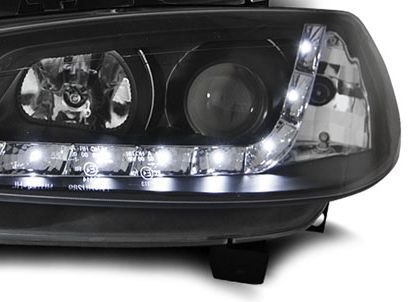 Φανάρια εμπρός led Dayline για Audi A4 (1999-2001) – με led φλας, μαύρα , με λάμπες (Η1) – σετ 2τμχ.