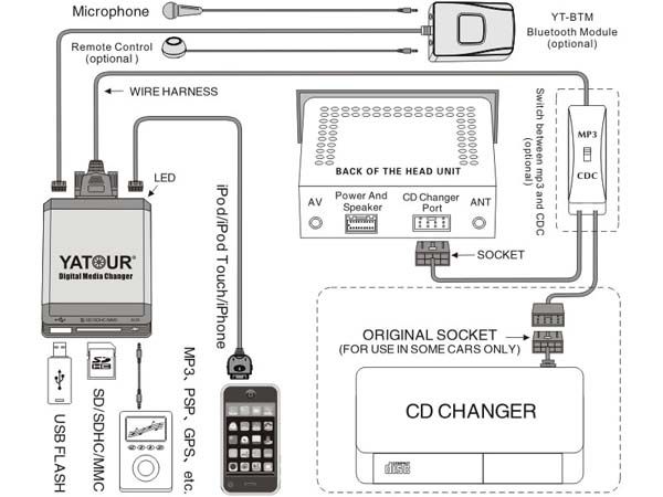 Ξεχωριστή bluetooth handsfree συσκευή για με το τηλέφωνο προς το USB Changer και το εργοστασιακό ηχοσύστημα του αυτοκινήτου.